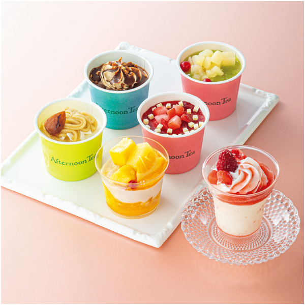 ●内容量:苺のパフェ80ml、スイートフルーツティーパフェ82ml、渋皮栗のモンブラン94ml、洋梨とアールグレイ・苺とチーズ・ダブルチョコレート 各103ml(計6)