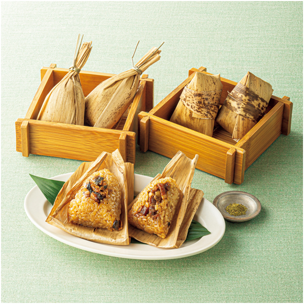 コクのあるたれで味付けしたもち米に国産うなぎをトッピングしたおこわと、黒豚角煮をのせたちまきを詰合せ。